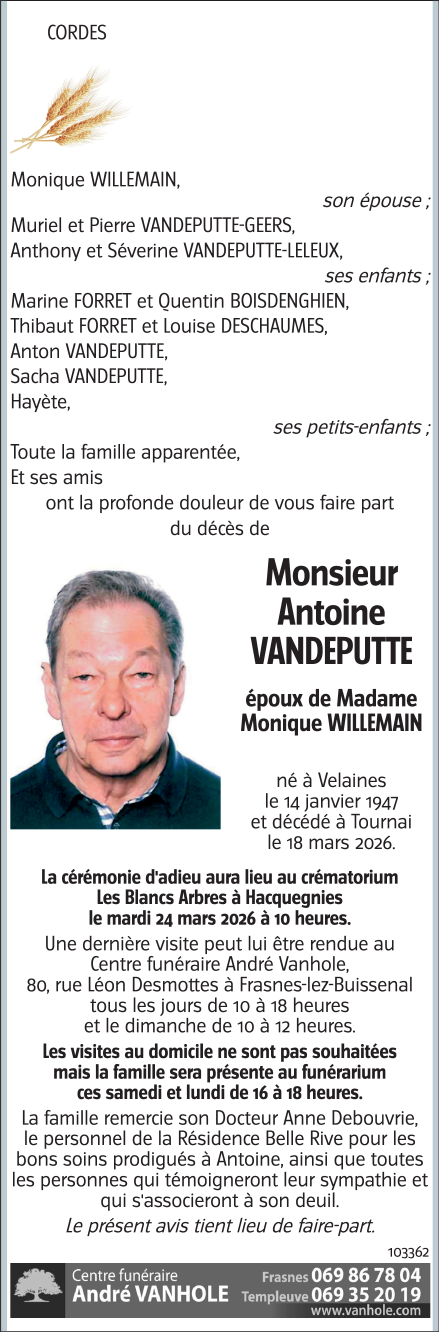 Monsieur Antoine VANDEPUTTE